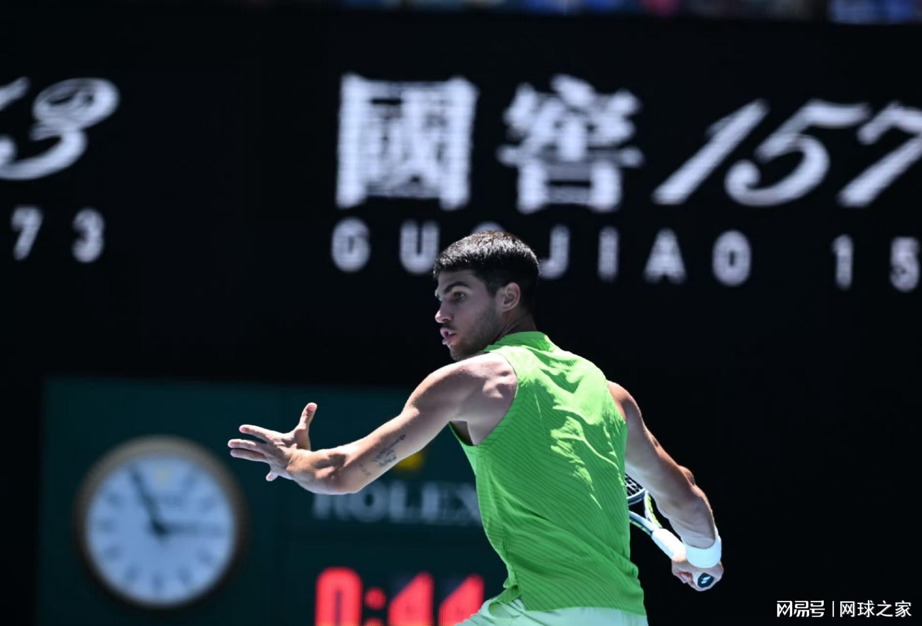 北京时间1月21日,2026年澳网男单第二轮,头号种子阿尔卡拉斯迎战世界排名第102位的德国选手汉夫曼,让人没想到的是,阿尔卡拉斯首盘意外陷入苦战,不过,最终世界第一还是凭借经验以7-6(4) 6-3 6-2直落三盘获胜,晋级32强。