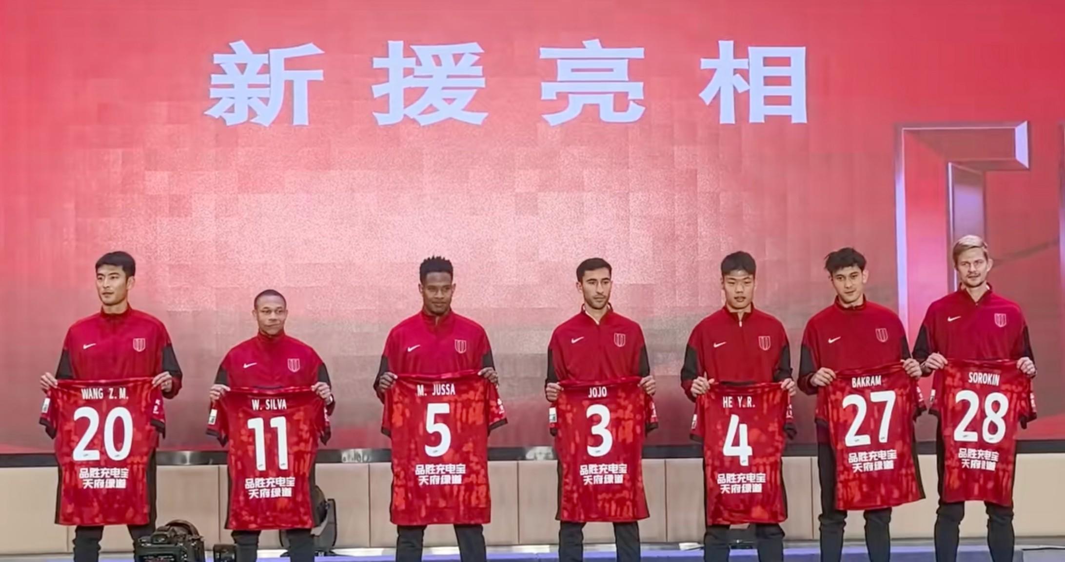 3月3日下午,在成都蓉城的新赛季出征仪式上,俱乐部常务副总经理姚夏等人为新援授球衣。
